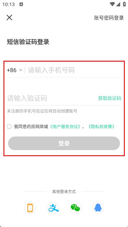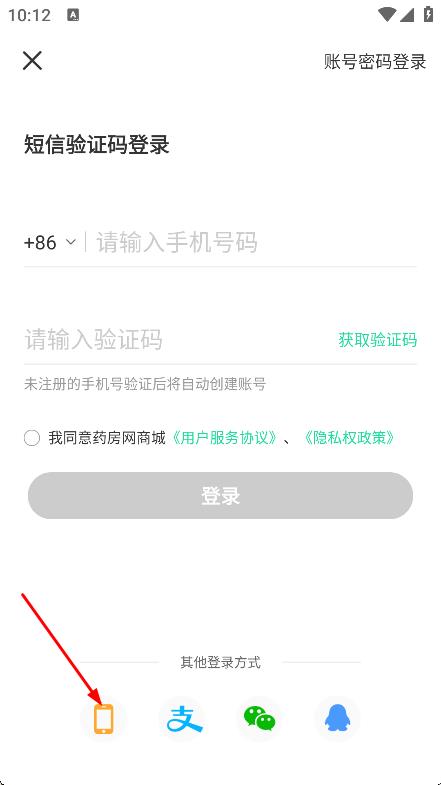 3、在登錄頁面,選擇短信驗(yàn)證碼登錄方式,進(jìn)入驗(yàn)證碼登錄界面。