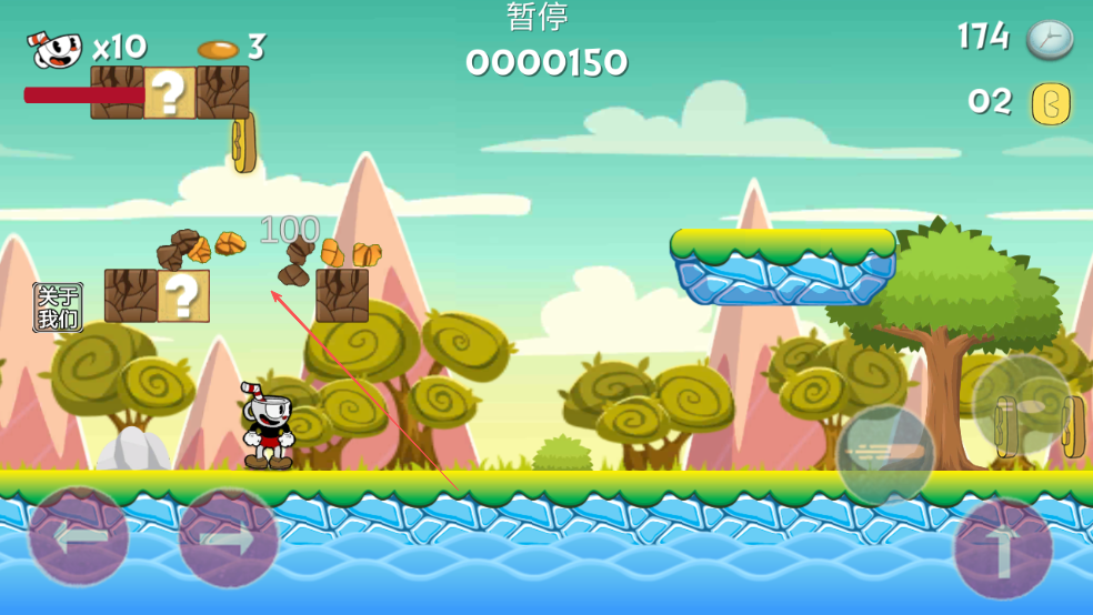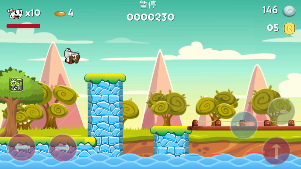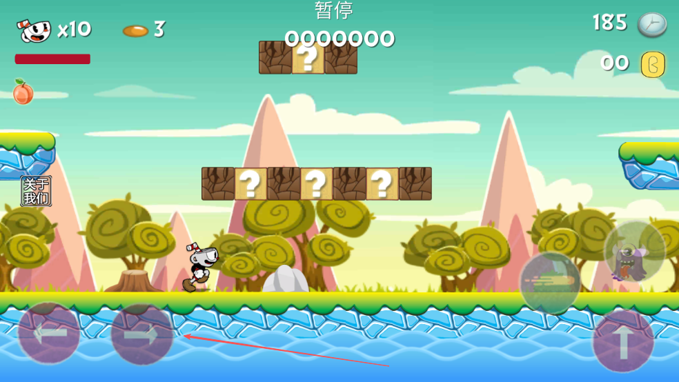 4、利用屏幕右下角跳躍按鈕,越過障礙和敵人,不斷向關卡深處前進。