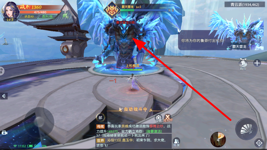 3、任務(wù)遇到強(qiáng)大的怪物,擊敗震天雷龍等,與這些怪物展開(kāi)戰(zhàn)斗,運(yùn)用技能和策略,擊敗怪物,獲取戰(zhàn)斗獎(jiǎng)勵(lì),提升自身戰(zhàn)力。