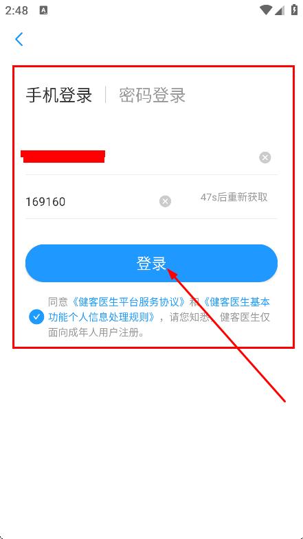 4、輸入手機(jī)號和驗證碼,點(diǎn)擊登錄,完成登錄操作。