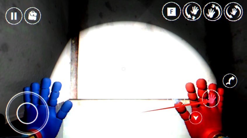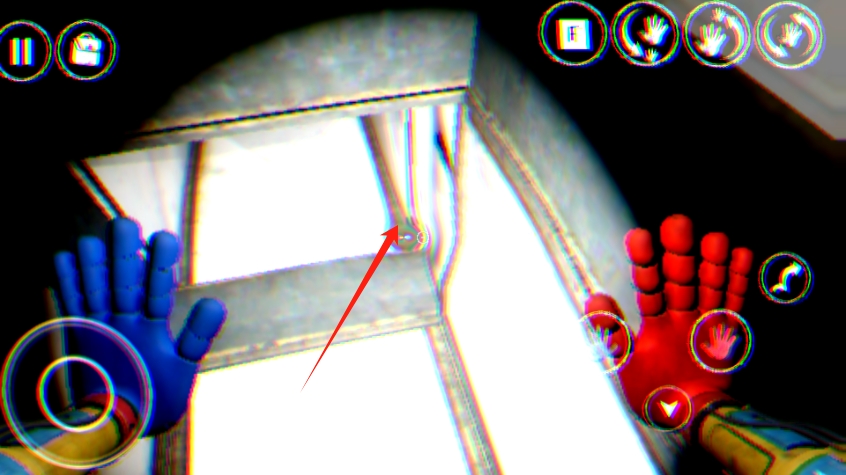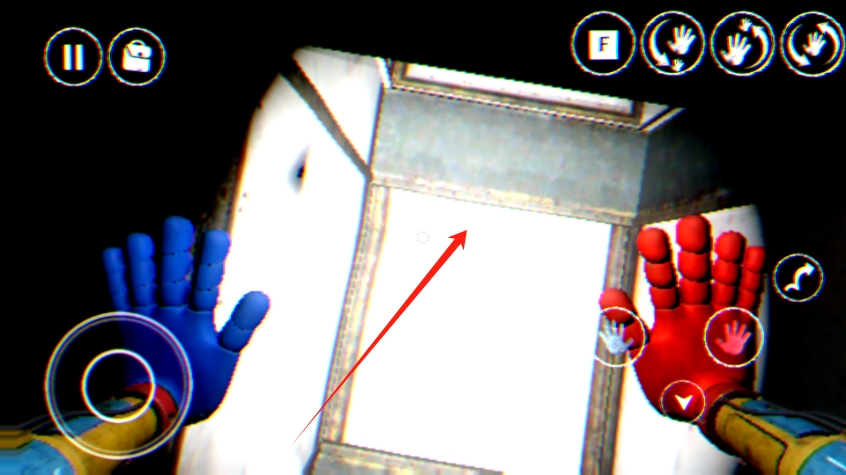 1、游戲中,可點擊右側紅色手掌圖標,操控紅色機械手掌進行互動操作,比如推動拉動物體,探索場景并推進游戲進程。