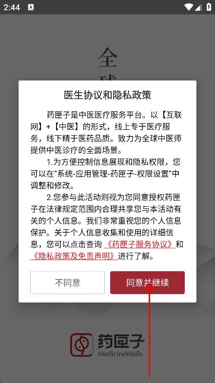 1、在隱私政策彈窗中,點(diǎn)擊同意并繼續(xù),進(jìn)入APP主頁(yè)面。