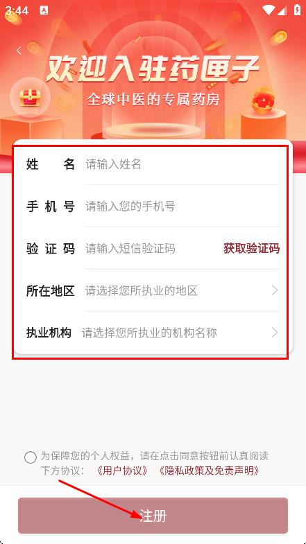 4、填寫(xiě)姓名、手機(jī)號(hào)等信息,獲取并輸入驗(yàn)證碼,點(diǎn)擊注冊(cè),完成注冊(cè)操作。