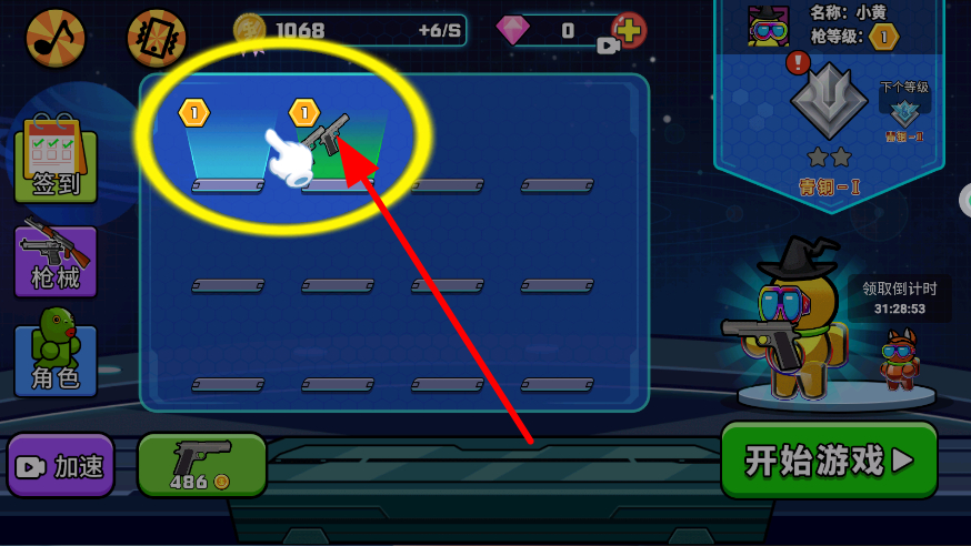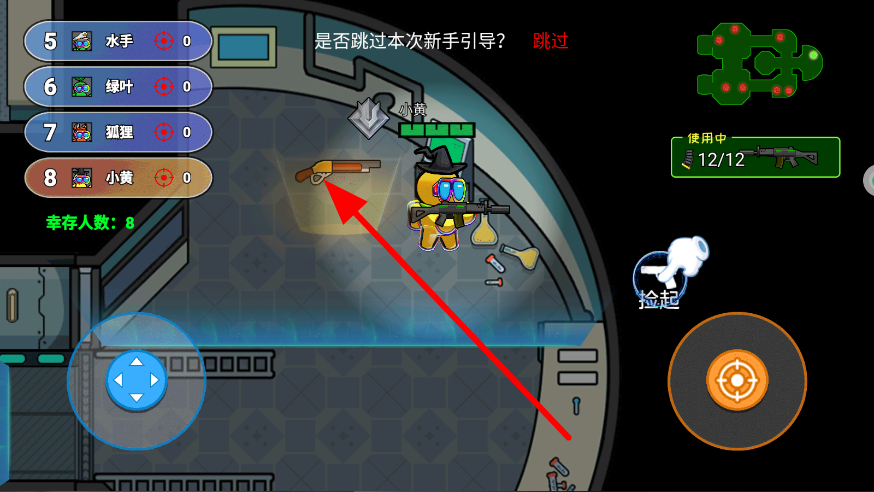 3、發(fā)現(xiàn)其他武器時(shí),移動(dòng)角色靠近并拾取,更換更強(qiáng)力的武器,提升自身的攻擊能力,為擊敗敵人提供更好的條件。