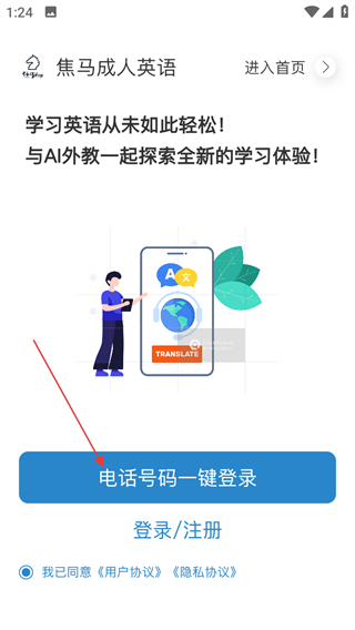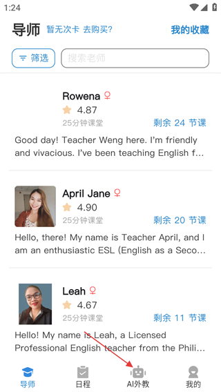 1、點擊頁面底部的AI外教,進入AI課程頁面。