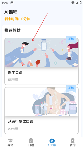 2、在AI課程頁面,選擇要學習的課程,如醫(yī)學英語。