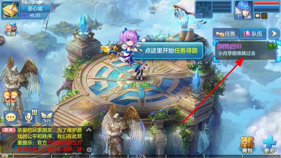 2、在游戲場景中,跟隨主線任務(wù)指引,比如小月學(xué)姐喚我過去等劇情任務(wù),推進任務(wù)進程,探索游戲世界。