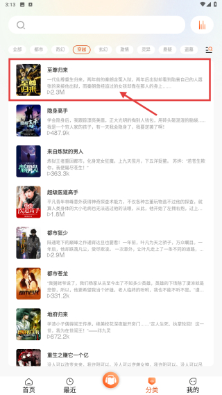 3、在玄幻內(nèi)容列表中,找到至尊歸來條目,點擊進入詳情頁。