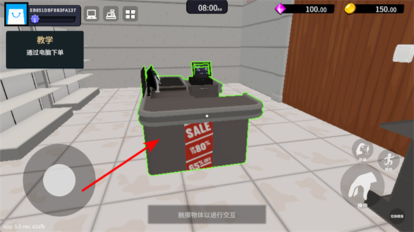 2、在店鋪內(nèi),靠近帶有SALE標(biāo)識(shí)的收銀臺(tái),觸摸物體進(jìn)行交互,可開展下單等相關(guān)操作,推進(jìn)流程。