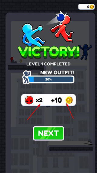 3、成功完成關(guān)卡后,會獲得VICTORY!的勝利提示,還能獲取金幣、紅色頭像等獎勵。