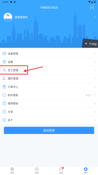 2、在個(gè)人中心,點(diǎn)擊員工管理選項(xiàng),進(jìn)入員工管理功能區(qū)。