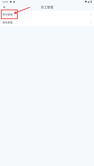 3、在員工管理頁面,點(diǎn)擊賬號(hào)管理選項(xiàng),進(jìn)入賬號(hào)管理界面。