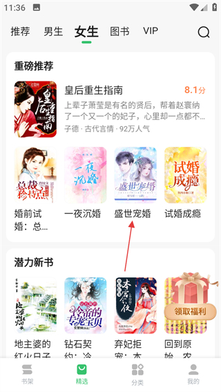 1、在精選頁面,選擇喜歡的書籍,進(jìn)入書籍詳情頁面。
