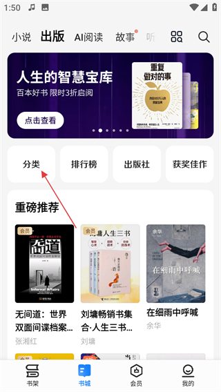 2、在分類頁面,選擇想要閱讀的書籍,進(jìn)入書籍詳情頁面。