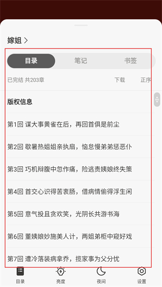 4、在目錄頁面,可查看書籍的目錄章節(jié)列表。