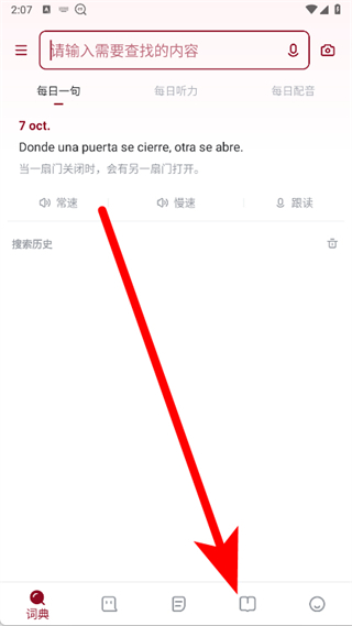 1、打開西語助手,點擊底部導(dǎo)航欄學(xué)習(xí)圖標,進入學(xué)習(xí)功能頁面。