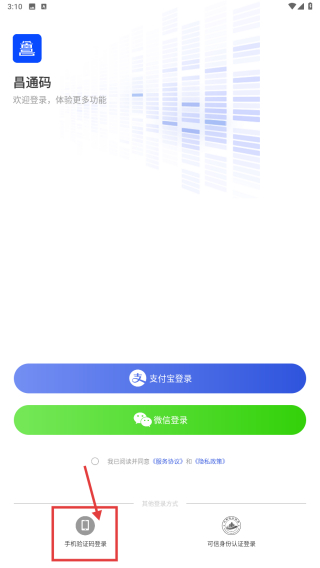 3、選擇手機號驗證碼登錄選項,進入手機號登錄頁面。