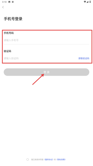 4、輸入手機號碼和驗證碼,點擊登錄按鈕,完成賬號登錄。