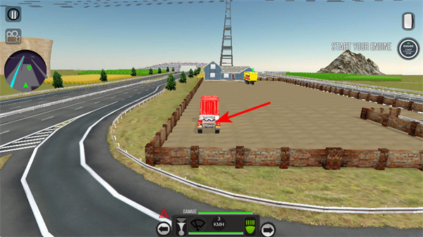 2、駕駛卡車移動,通過方向控制操作紅色卡車在場景中移動,探索區(qū)域并完成駕駛?cè)蝿?wù)。