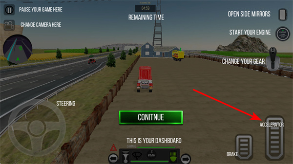 3、點擊ACCELERATOR加速,提升卡車行駛速度,快速接近目標(biāo),注意結(jié)合剎車控制車速。