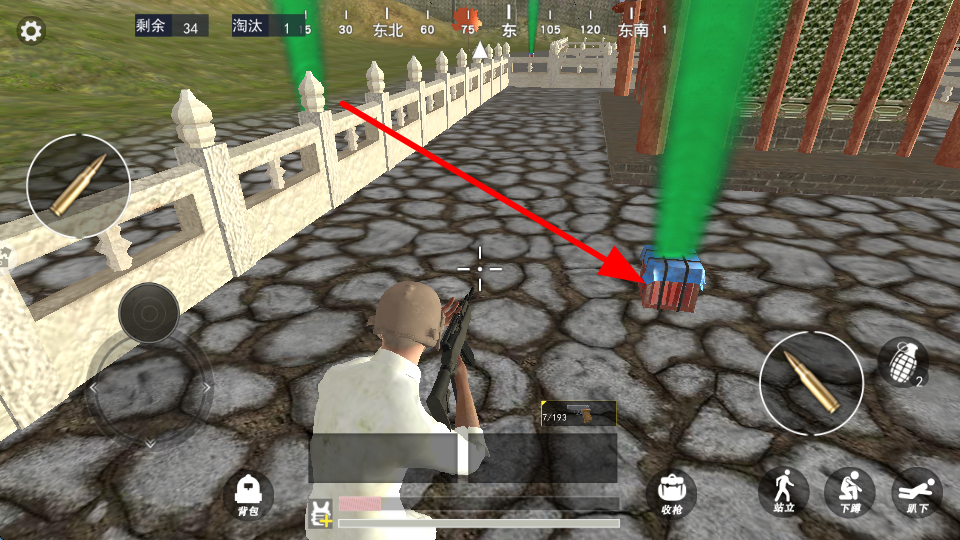 3、拾取空投要留意綠色光柱標(biāo)識(shí),靠近空投箱,及時(shí)獲取其中的物資,增強(qiáng)自身裝備與戰(zhàn)力。