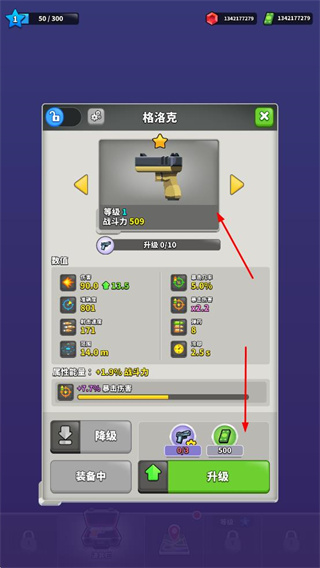 1、在武器界面,可花費(fèi)資源對武器進(jìn)行升級,提升武器的戰(zhàn)斗力等屬性,增強(qiáng)角色的攻擊能力。