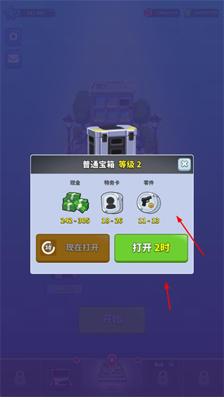 2、通過開啟寶箱,可獲取現(xiàn)金、特務(wù)卡、零件等獎勵,這些獎勵可用于武器升級、角色養(yǎng)成等。