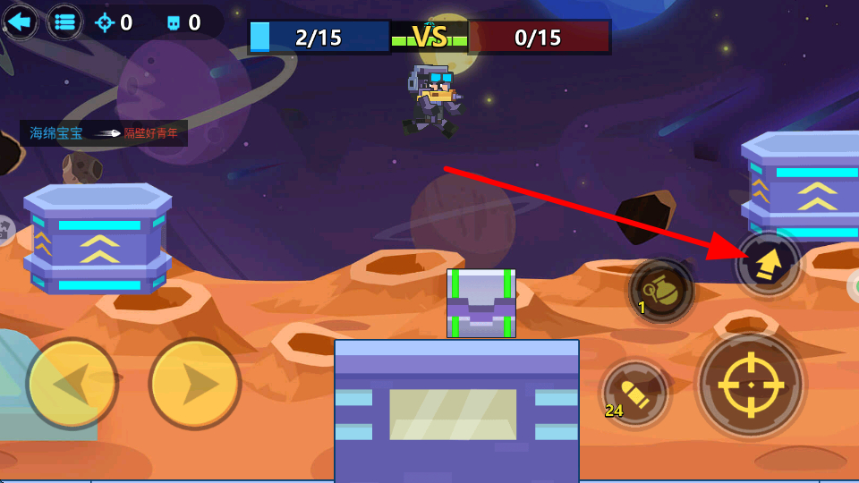 3、運用跳躍,點擊跳躍按鈕,讓角色向上跳躍,可跨越障礙物,或在躲避敵人攻擊時,借助跳躍調(diào)整位置,占據(jù)有利戰(zhàn)斗點。