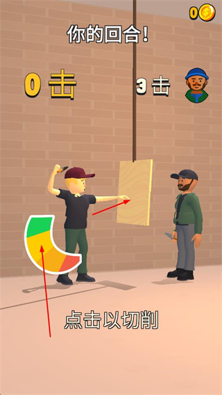 4、進入對戰(zhàn)環(huán)節(jié),在自己的回合,點擊進行切削等操作,與對手比拼,通過積累擊打次數(shù)等方式,爭取在對戰(zhàn)中獲勝。