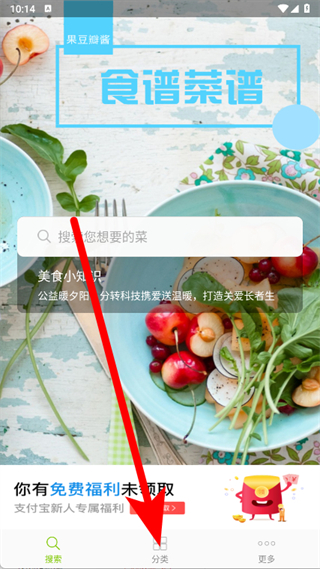 1、打開菜譜食譜應(yīng)用,點(diǎn)擊底部分類。