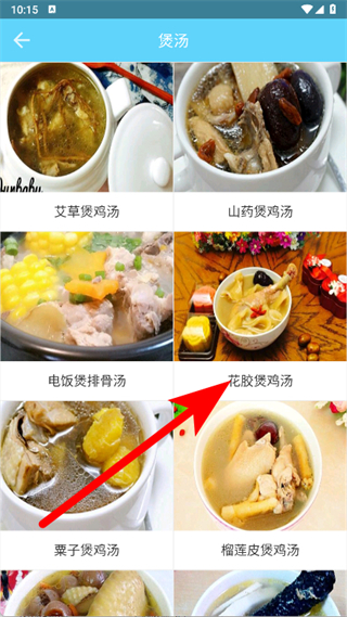 3、在煲湯分類的食譜列表中,點(diǎn)擊想要查看的食譜。