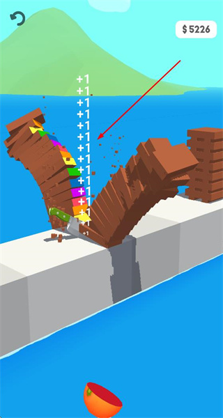 4、在不同的場景如陸地、海邊等中進(jìn)行飛刀投擲破壞,持續(xù)破壞物體積累分?jǐn)?shù)和金錢,用于解鎖更多飛刀和挑戰(zhàn)更高難度的關(guān)卡。