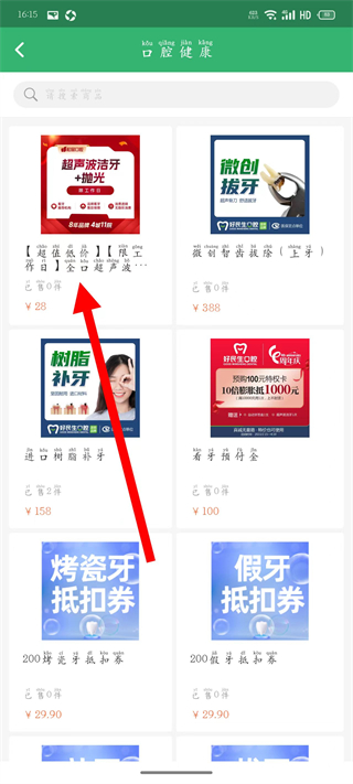 2、在商城頁(yè)面,點(diǎn)擊口腔健康選項(xiàng)。