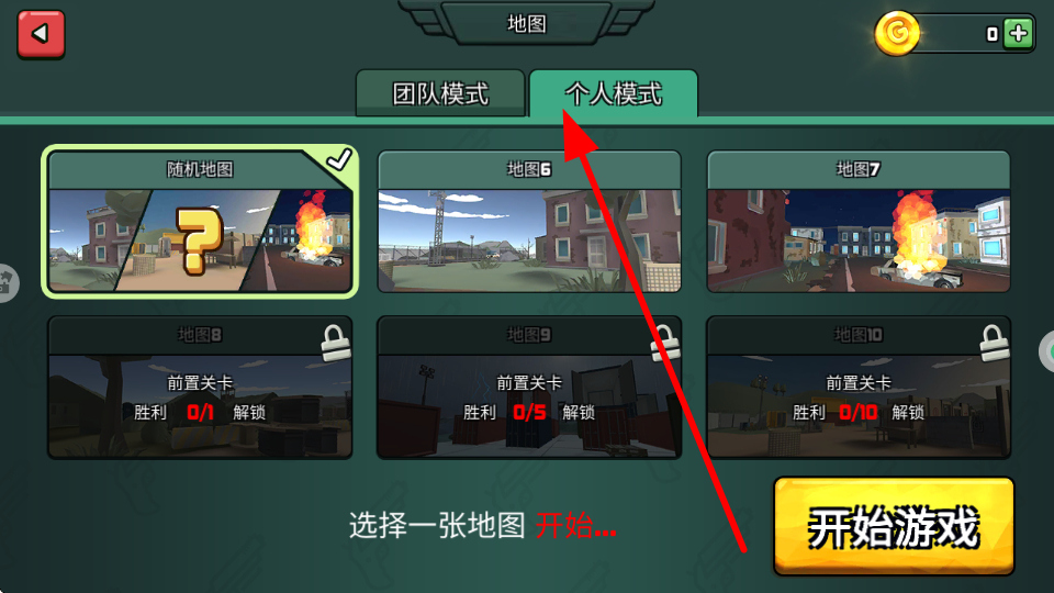 1、根據(jù)自己的游玩偏好,挑選團隊模式或個人模式,不同模式有不同的戰(zhàn)斗規(guī)則與樂趣,選好后點擊開始游戲進入。