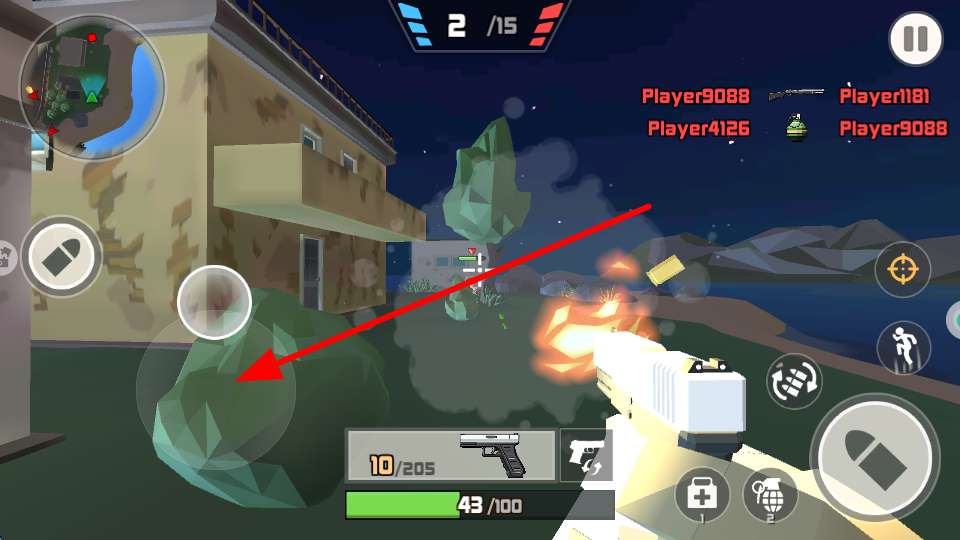 2、通過左側(cè)的虛擬搖桿,能控制角色在場景中自由移動,躲避敵人攻擊或搶占有利射擊位置,提升生存與戰(zhàn)斗空間。