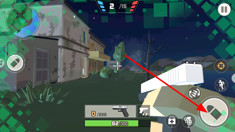 3、利用準星瞄準敵人,點擊右側(cè)射擊按鈕發(fā)起攻擊,精準命中可快速消滅敵人,積累得分,推進戰(zhàn)斗進程。