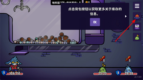 3、查看背包點(diǎn)擊背包按鈕,獲取庫(kù)存信息,了解當(dāng)前擁有的道具數(shù)量和類型,便于規(guī)劃。