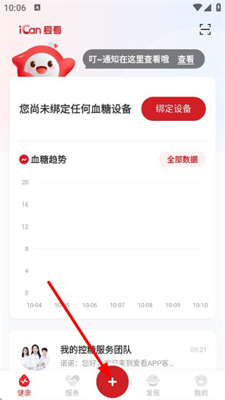 1、在APP主頁(yè)面,點(diǎn)擊底部+號(hào),進(jìn)入記錄健康頁(yè)面。