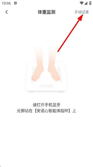 3、在體重監(jiān)測(cè)頁(yè)面,點(diǎn)擊手動(dòng)記錄,進(jìn)入體重記錄頁(yè)面。