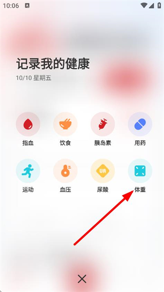 2、在記錄健康頁(yè)面,點(diǎn)擊體重,進(jìn)入體重監(jiān)測(cè)頁(yè)面。