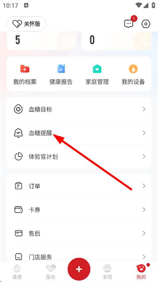 2、在個人頁面,點擊血糖提醒,進入血糖提醒設置頁面。