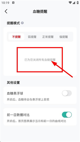 4、隨后頁面中顯示不提醒后,可立即關閉所有血糖提醒。