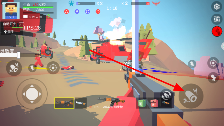 4、調(diào)整視角瞄準(zhǔn)敵人,然后點(diǎn)擊射擊按鍵,發(fā)射子彈攻擊敵人,注意射擊的時(shí)機(jī),提升擊中概率。
