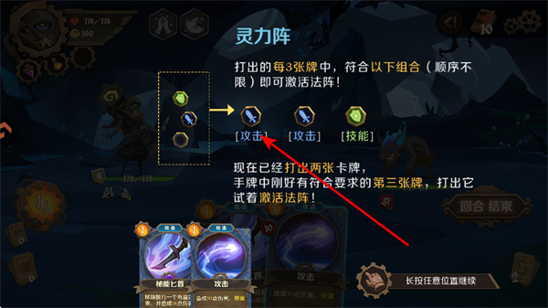 4、按照靈力陣的組合要求,打出符合條件的卡牌,激活法陣獲取增益效果,提升戰(zhàn)斗能力。