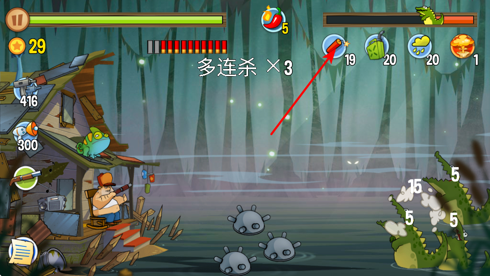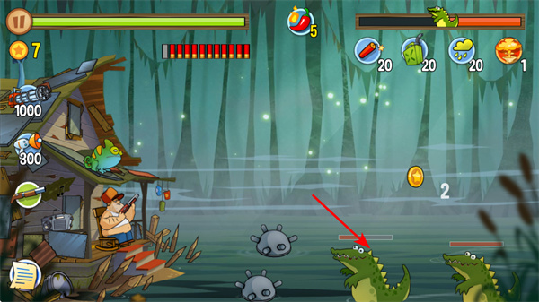 1、戰(zhàn)斗積累經(jīng)驗(yàn),攻擊對(duì)面行進(jìn)的鱷魚等敵人,通過戰(zhàn)斗獲取經(jīng)驗(yàn),積累程度即可升級(jí)。