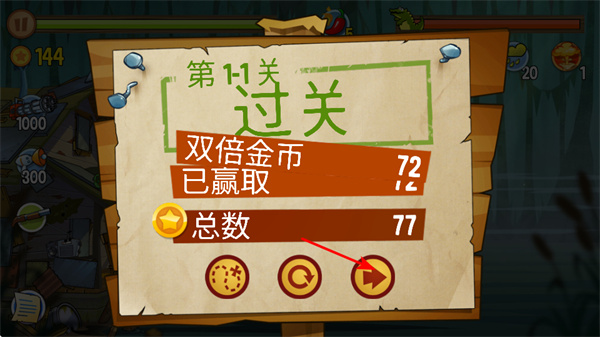 2、通關(guān)后點(diǎn)擊箭頭按鍵,來進(jìn)行獲取獎(jiǎng)勵(lì),完成后,獲得金幣和經(jīng)驗(yàn)的獎(jiǎng)勵(lì),助力游玩升級(jí)。
