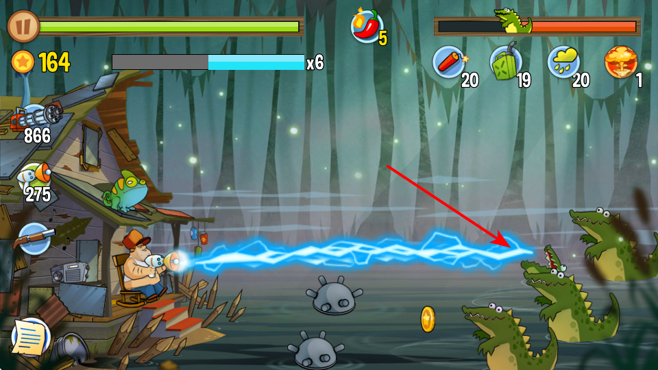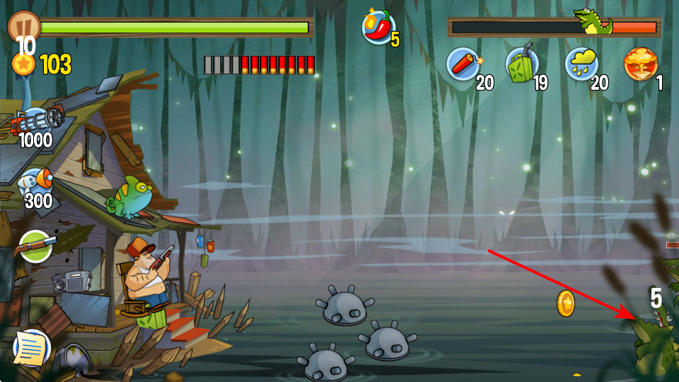 提供明確的玩法攻略,強(qiáng)調(diào)裝備升級的重要性,建議玩家用金幣解鎖強(qiáng)力槍支、提升武器戰(zhàn)斗力;同時提醒擊殺鱷魚后需及時拾取金幣,收集水面小黃鴨。
