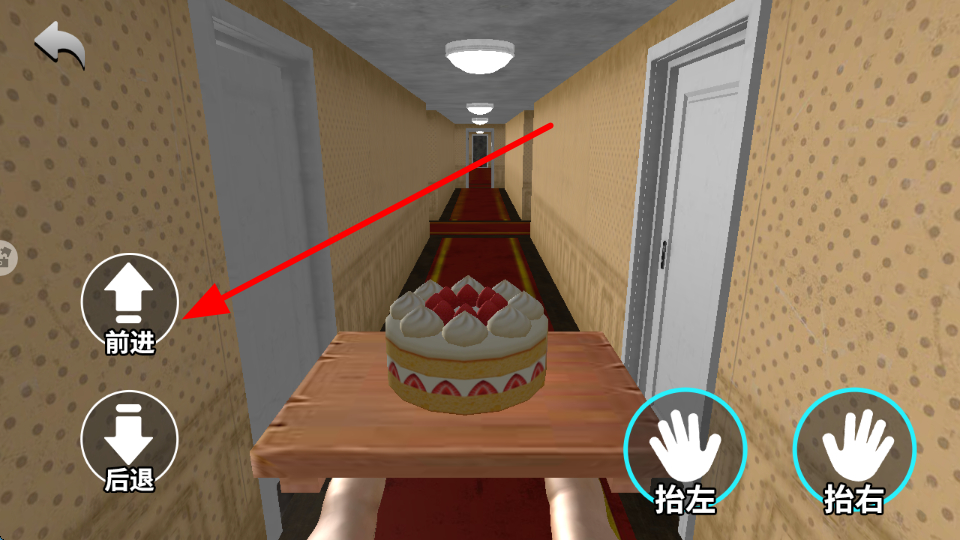 1、點(diǎn)擊左側(cè)前進(jìn)按鈕,角色會(huì)向前移動(dòng),點(diǎn)擊后退按鈕,角色會(huì)向后移動(dòng),以此調(diào)整在走廊中的位置。