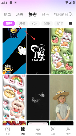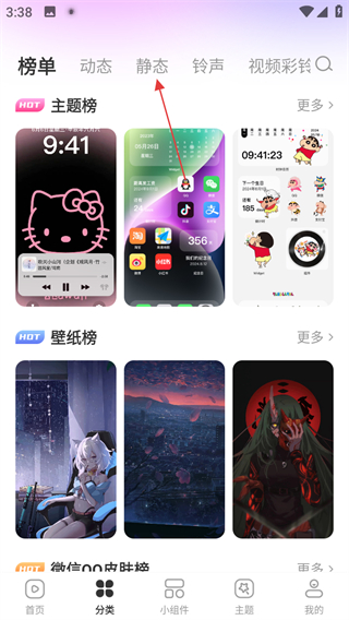 2、在分類頁面,點(diǎn)擊靜態(tài),進(jìn)入靜態(tài)壁紙頁面。