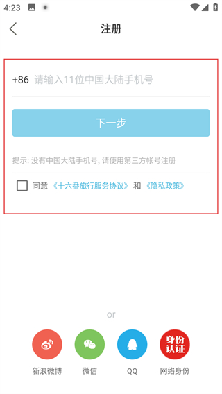 4、在注冊頁面,輸入信息勾選協(xié)議后點擊下一步,完成注冊操作。